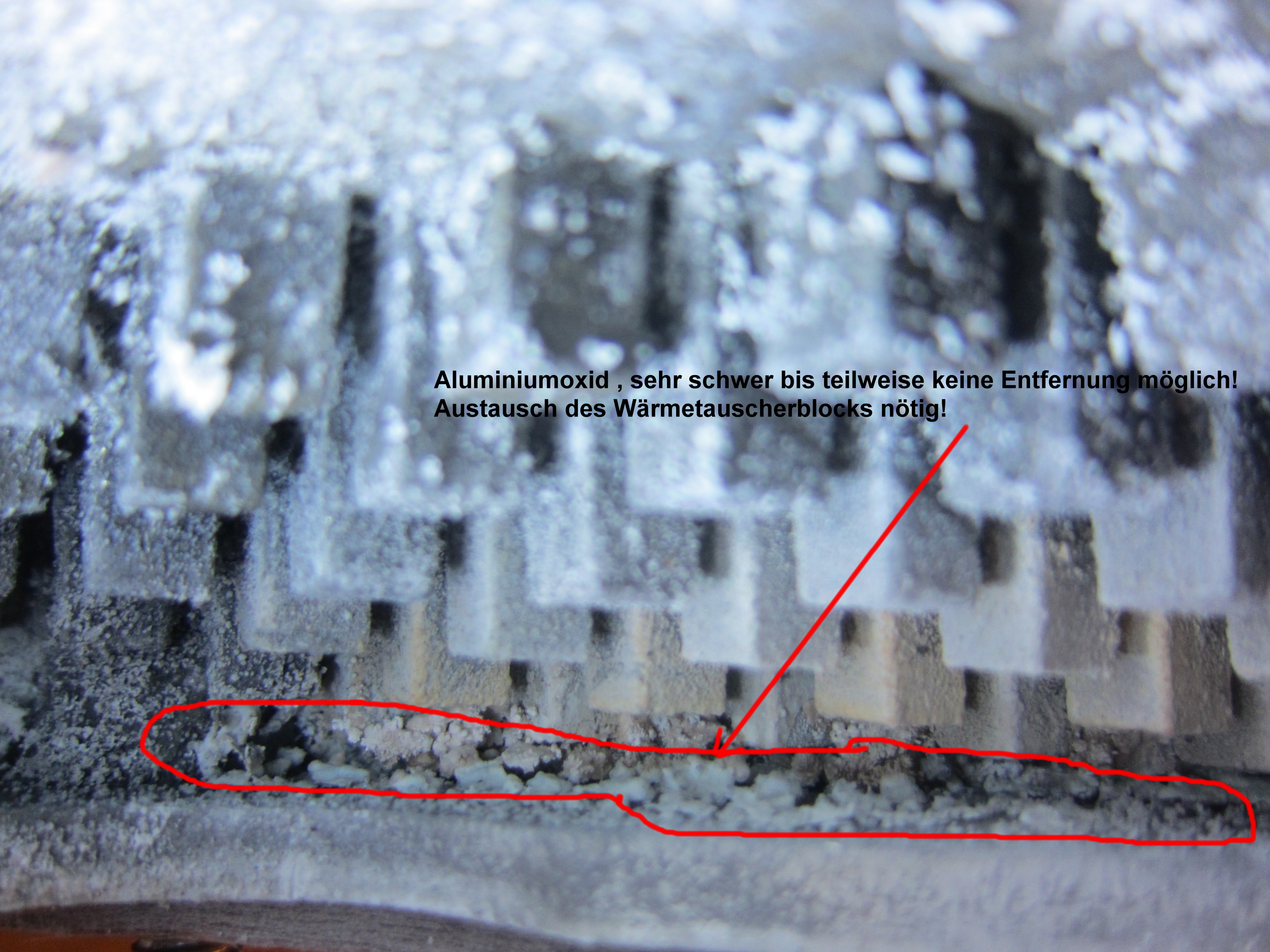 Aluminium-Wärmetauscher. Dieses Gerät ist Baujahr 1992 und wurde nie richtig